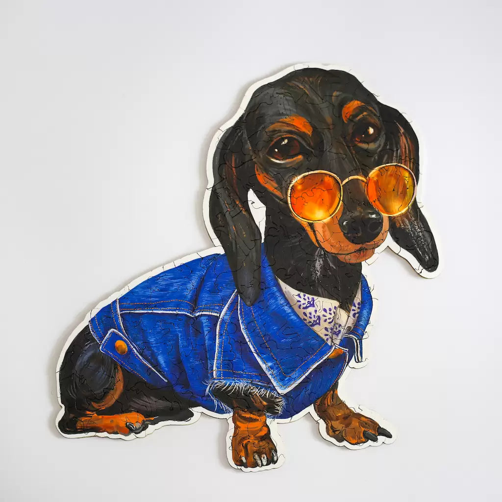 Kad sastavite slagalicu dobijete velikog drvenog psa, sastavljenog od stotine malih pasa, raznih rasa i svakodnevnih predmeta iz psećeg života.