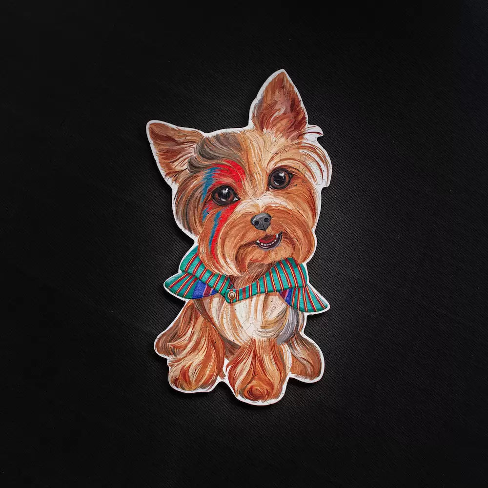Jorkširski Terijer voli da sluša Dejvid Bouvija, spreman je za nastup, a mi smo ga ovekovječili u nesvakidašnjoj drvenoj slagalici.
