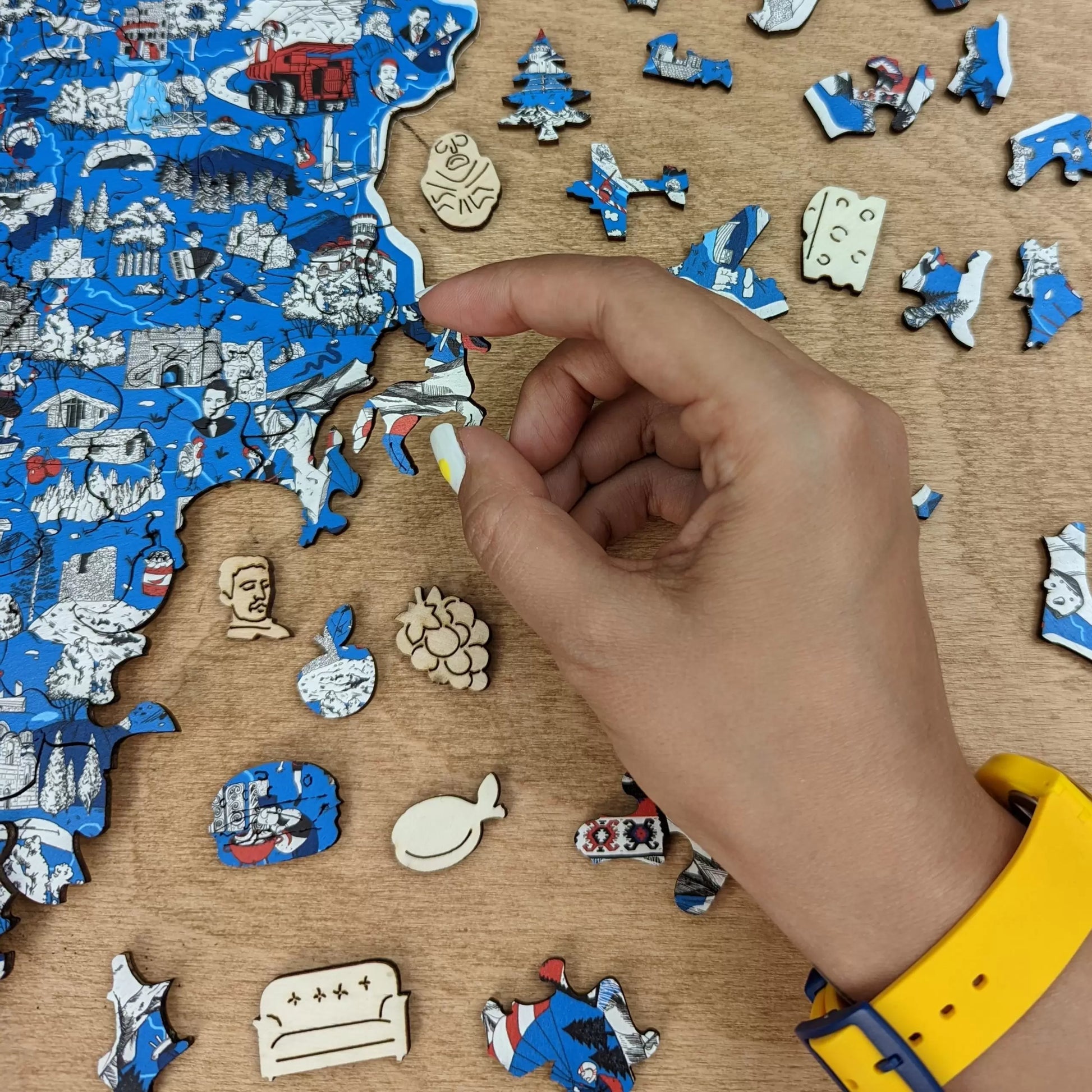 Drvena slagalica Mapa blaga Srbije ima 100 dijelova i prava je poslastica za ljubitelje slagalica, sa posebno istaknutim edukativnim karakterom.